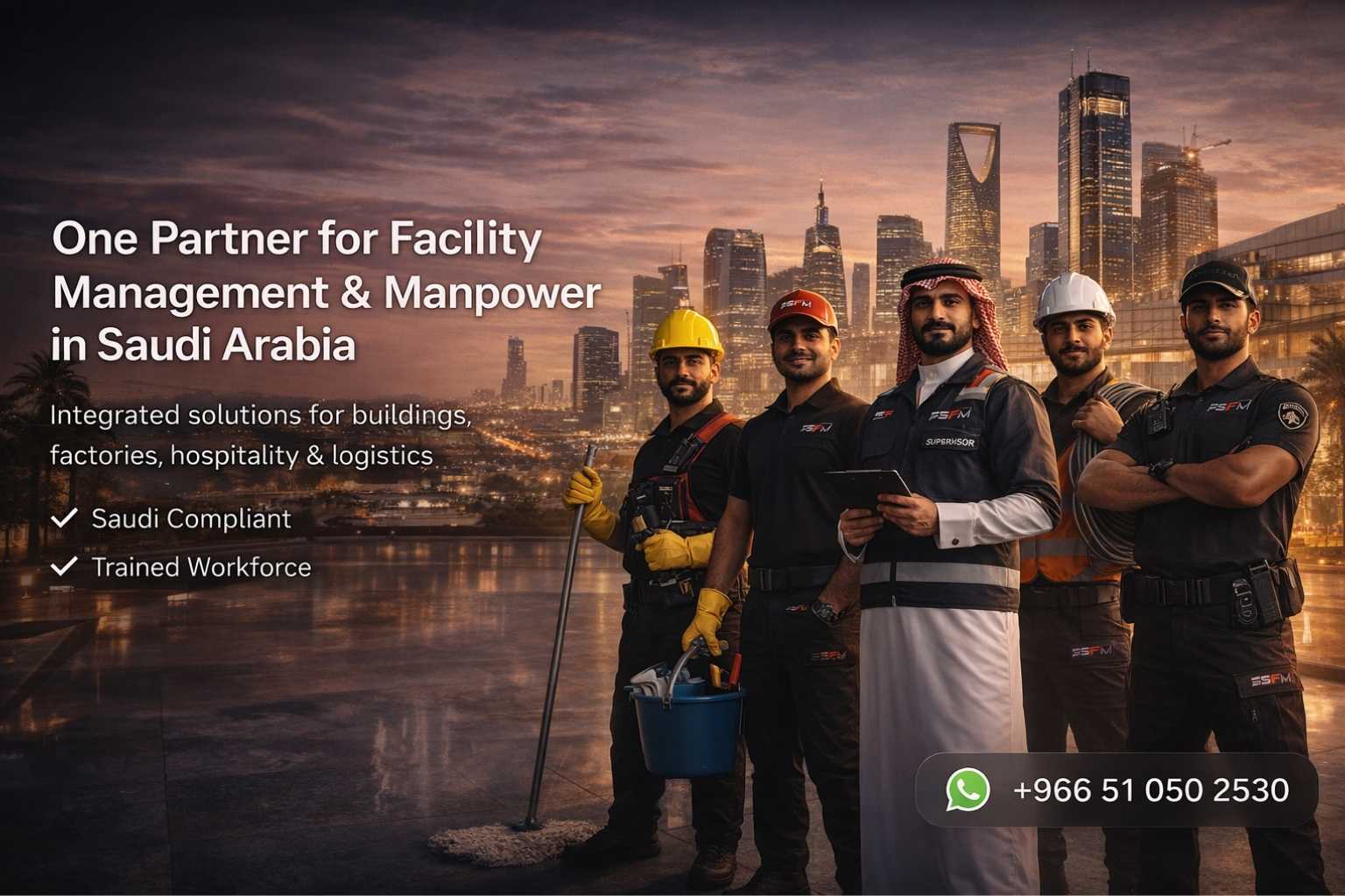 Premium Support Facility Management Ltd (PSFM) provides professional facility management services in Saudi Arabia including cleaning, maintenance, and manpower supply across Jeddah, Riyadh, and Dammam.